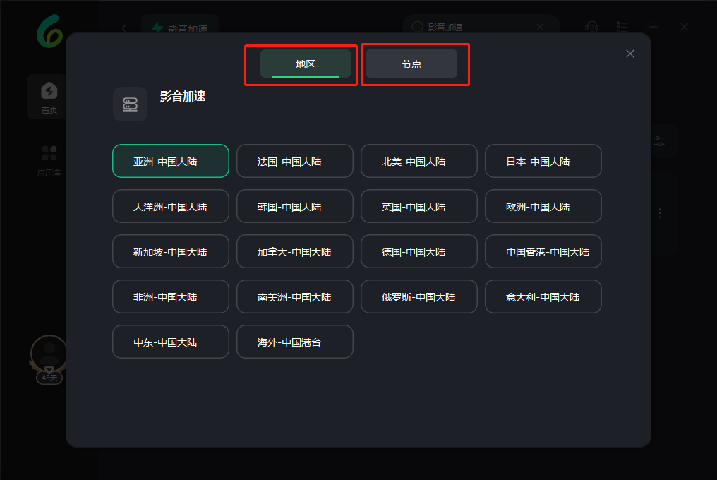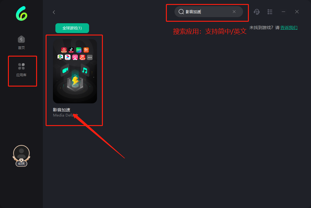 启动桌面端Sixfast,选择左侧应用库,下滑找到影音加速或直接搜索找到影音加速,点击图标即可开始加速,加速后即可解锁平台版权限制。