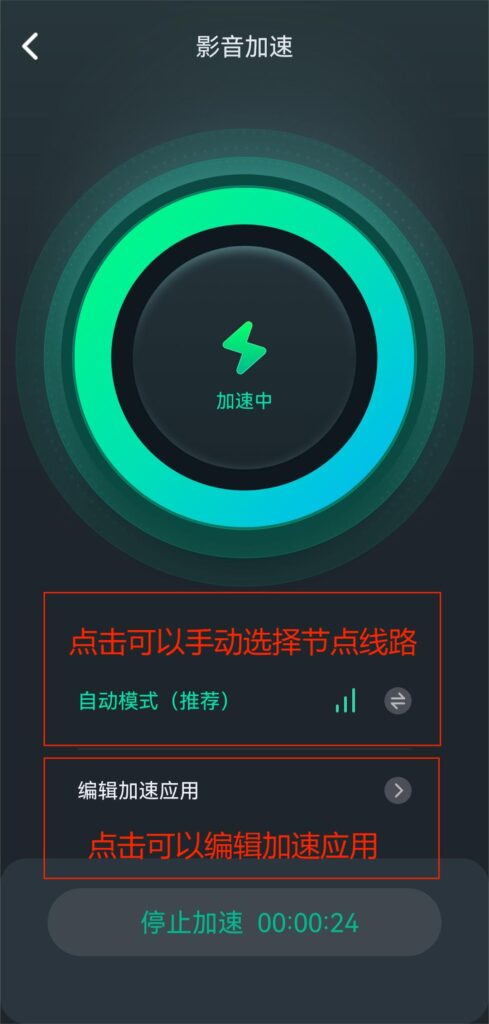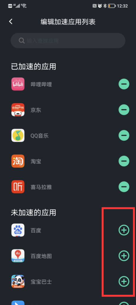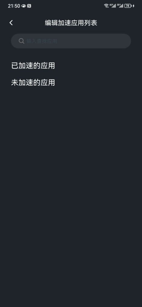 安卓端进入【编辑加速应用】即可看到【已加速应用】和【未加速应用】,从【未加速应用】内点击添加,返回选择【应用加速】,完成加速后重启应用即可。